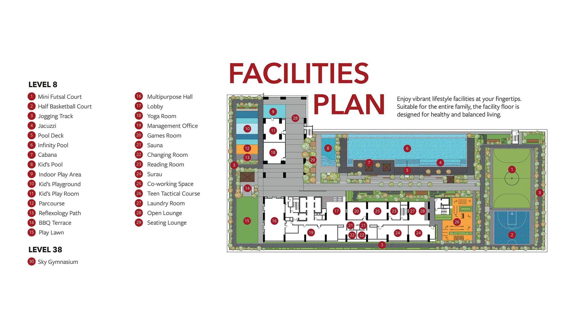 Home owners will have access to exclusive facilities, among them are co-working space with private meeting rooms, a cozy reading rooms, games room overlooking the urban park, and also an infinity swimming and wading pool.