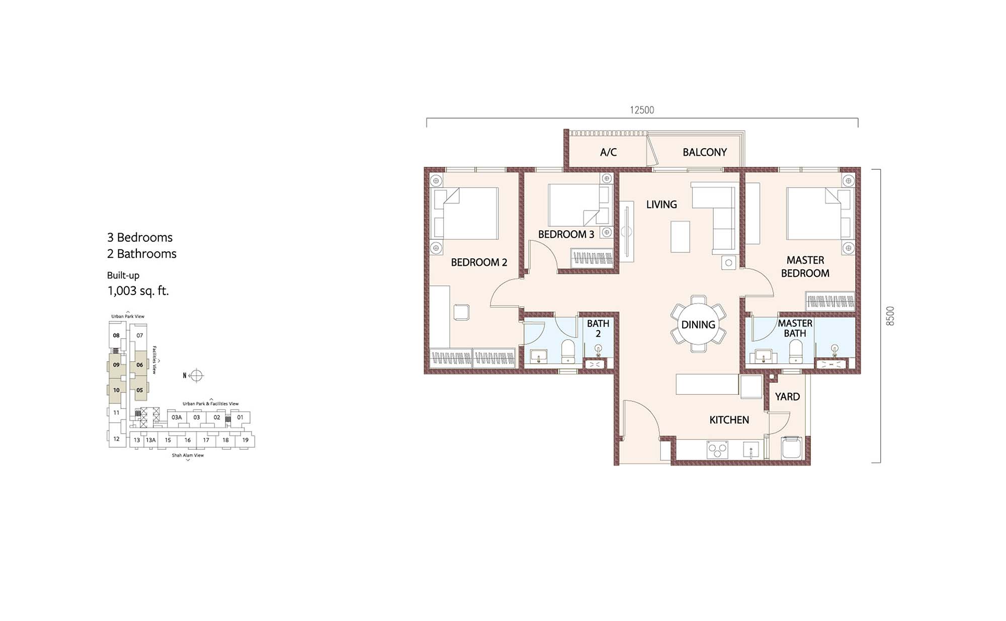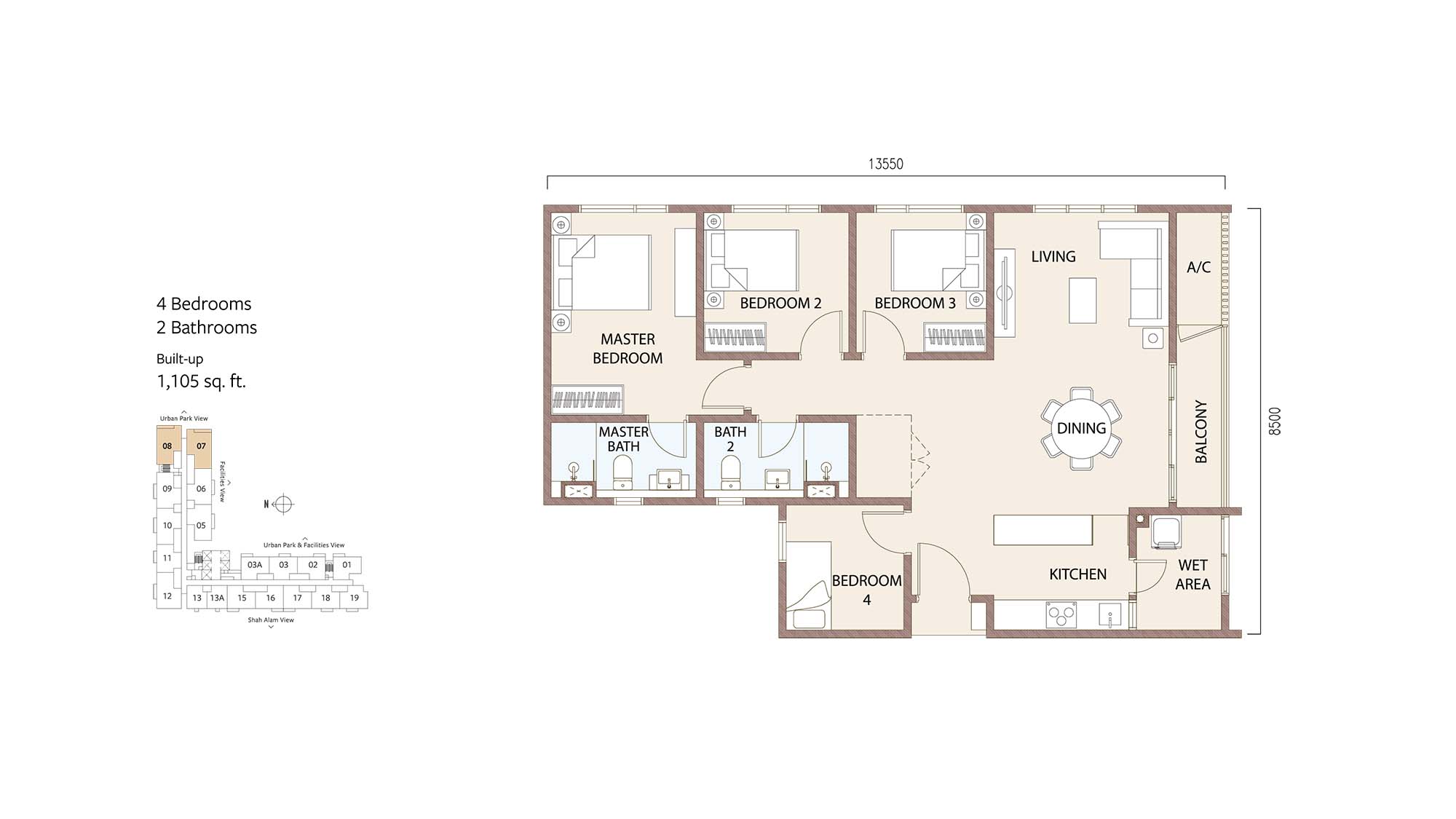 Overlooking a 9.2-acre Urban Park, the service apartment offers a variety of unit types for selection. The choices of units ranging from 1 bedroom to 4 bedrooms, with selection of with or without balcony, offering potential home owners various options.